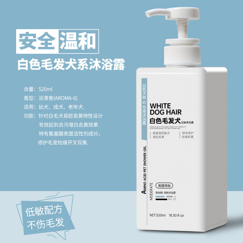 White-haired dog shower gel 520ml White-haired shower gel, hair conditioner, white-haired shower gel, deodorant, white-haired dog shower gel, internal deworming medicine