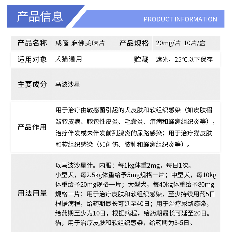 Mafo delicious tablets 20mg pet anti-inflammatory medicine cold medicine dog dog cat skin uritis infection Mafo micro