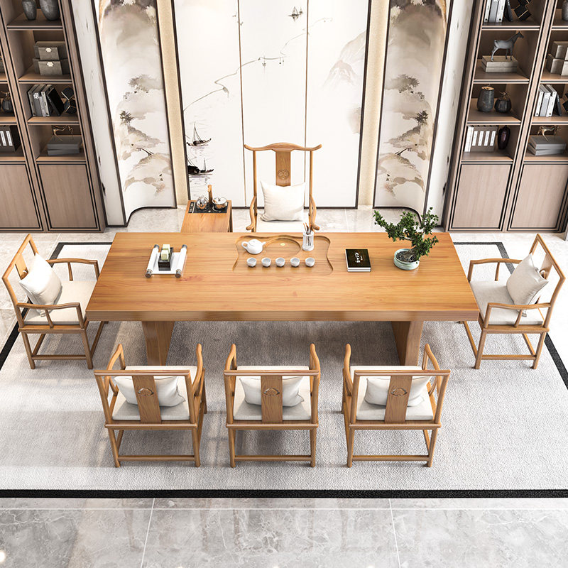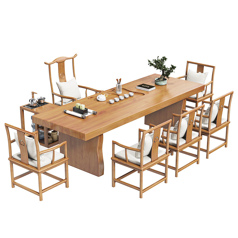 Log tea table and chair combination new Chinese kung fu simple modern tea table office solid wood tea table set all-in-one