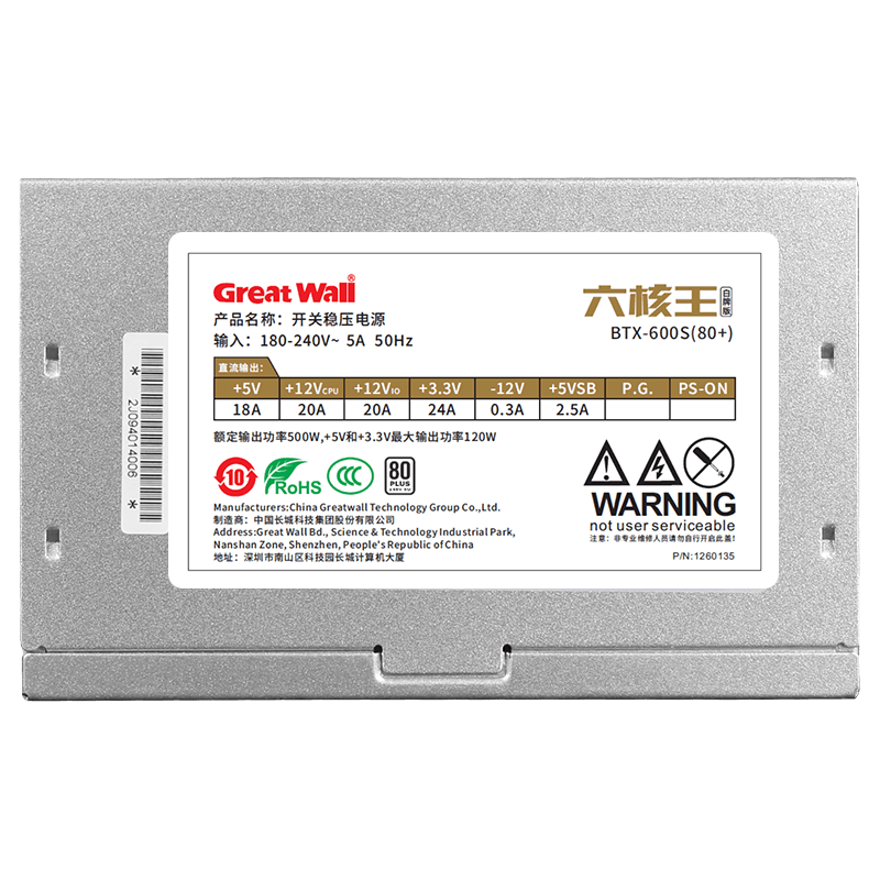Great Wall six-core king BTX-600S rated 500W power supply desktop computer silent game power supply white card certification