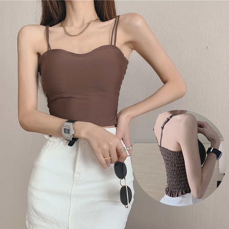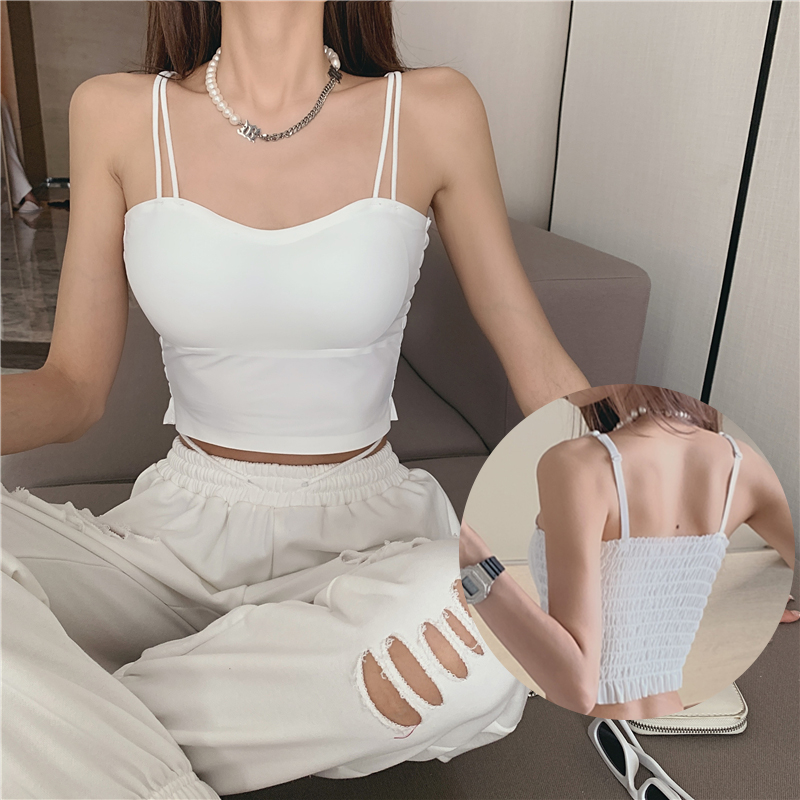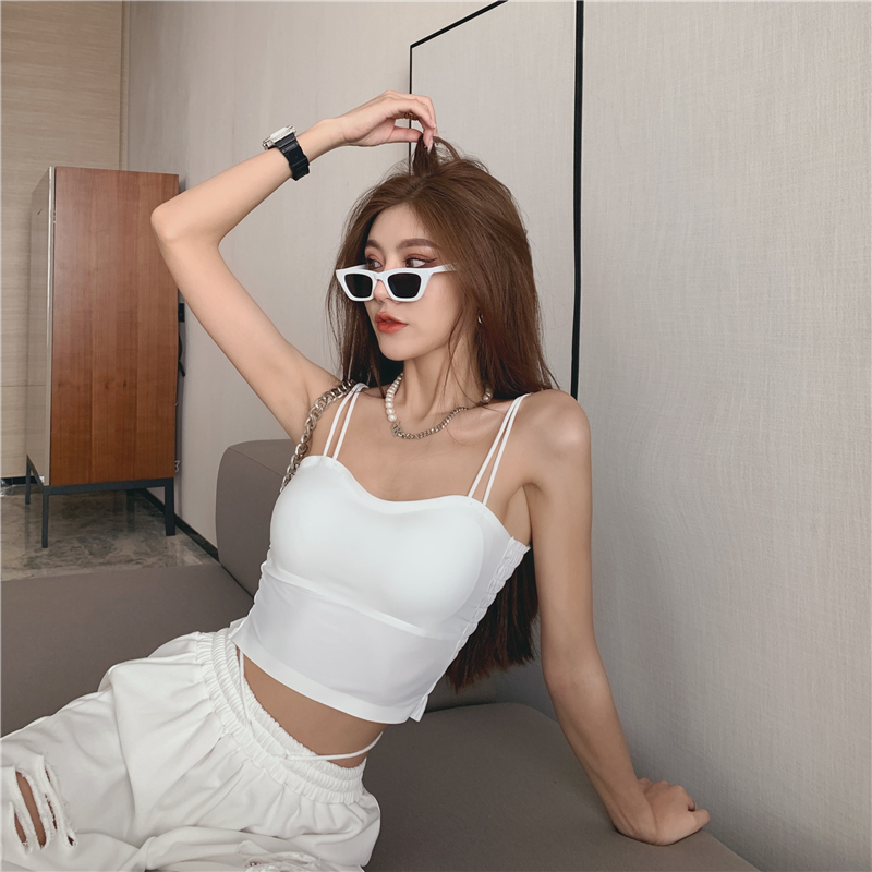 Japanese ice silk camisole female summer belt chest pad wrapped chest open waist bandeau single wear sexy versatile anti-light bottoming