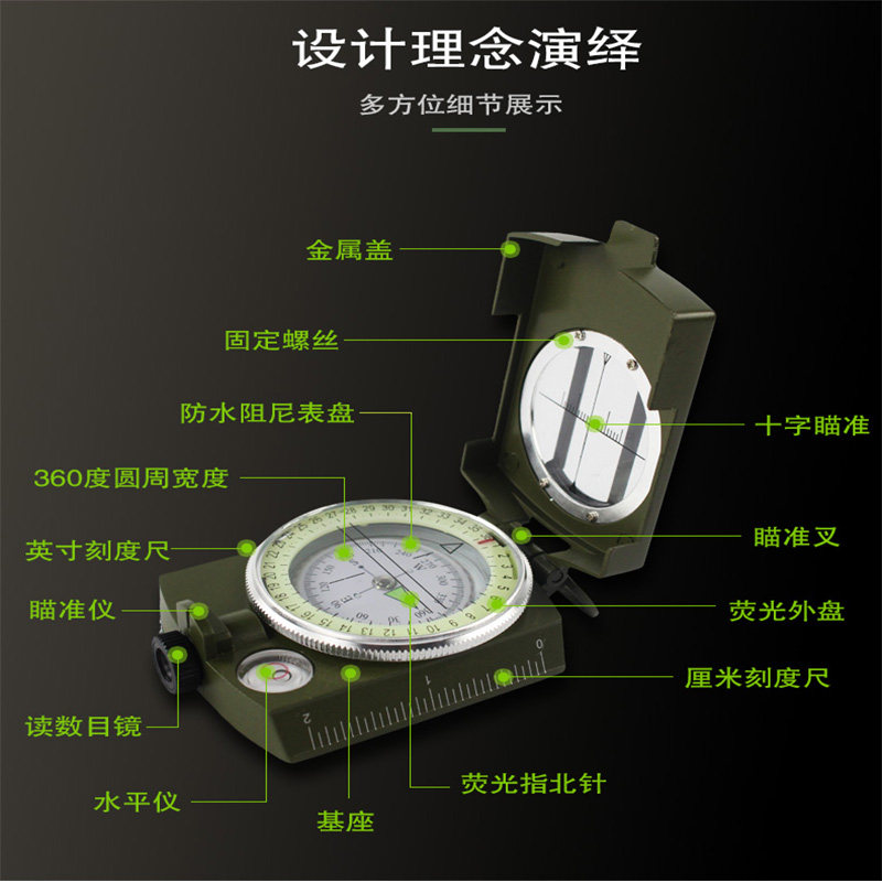 American multi-functional high-precision professional compass outdoor mountaineering compass geological compass military green K4580