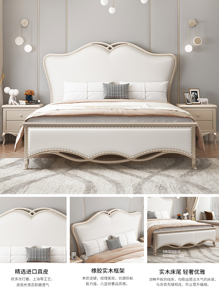 American solid wood bed modern simple 1 8 m double bed light luxury champagne gold master bedroom drawer bed wedding bed princess bed
