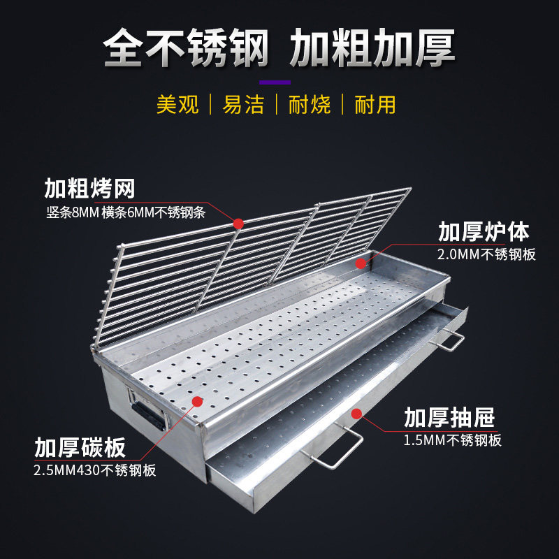 Quality full stainless steel drawer type of ash convenient thickened widening of commercial charcoal barbecue oven stall goat meat string
