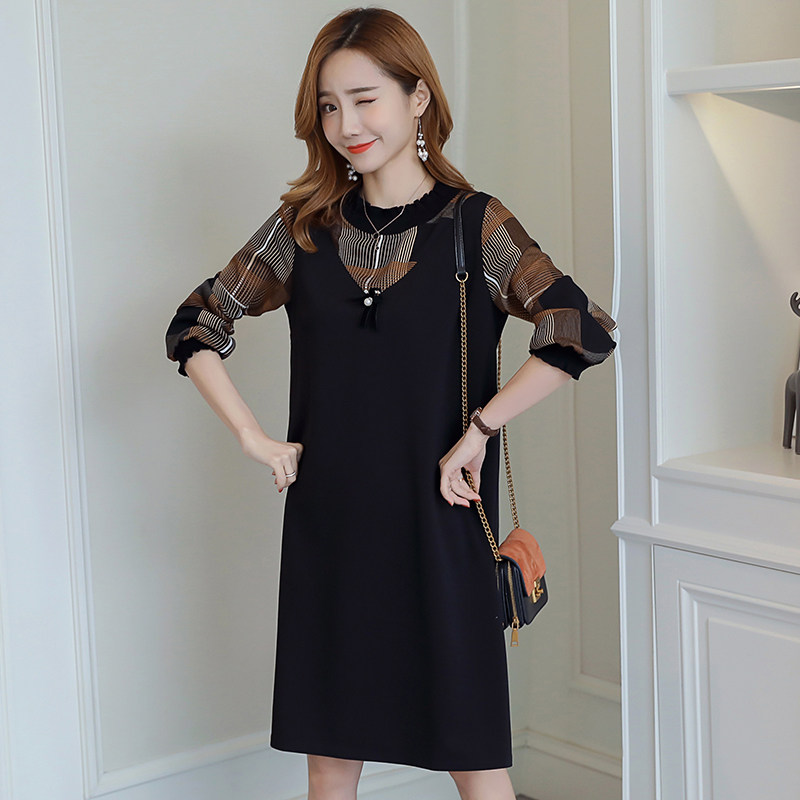 Pregnancy woman dress for autumn clothing Dress Fake two Thickened Plaid splicing skirts Loose Big Code Autumn Winter Pregnant Women Dress