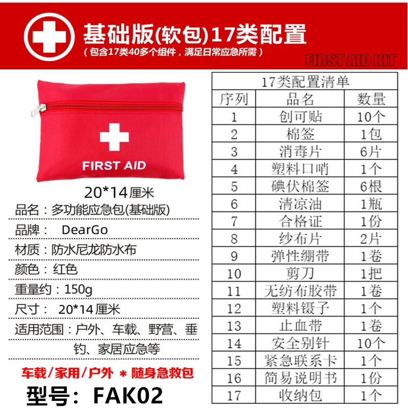 Outdoor travel first aid package car with portable household first aid kit field supplies escape kit self-defense earthquake first aid kit