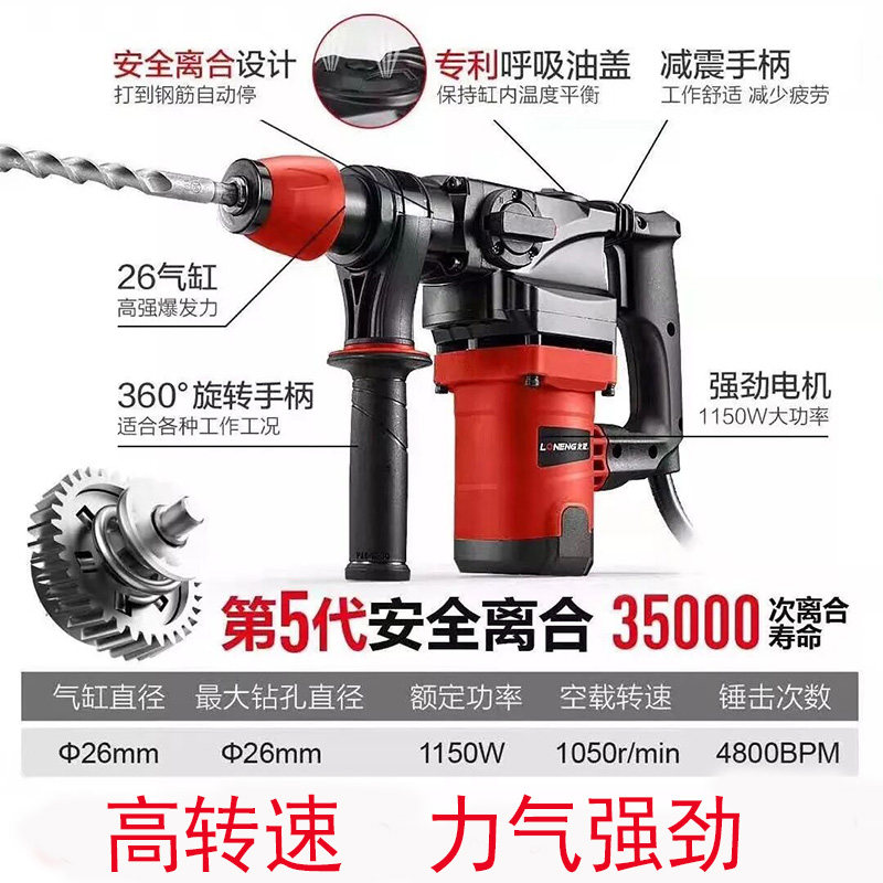Longneng electric hammer industrial grade 28S dual-purpose high-power impact drill multi-functional engineering planting reinforcement electric hammer dual-use electric pick