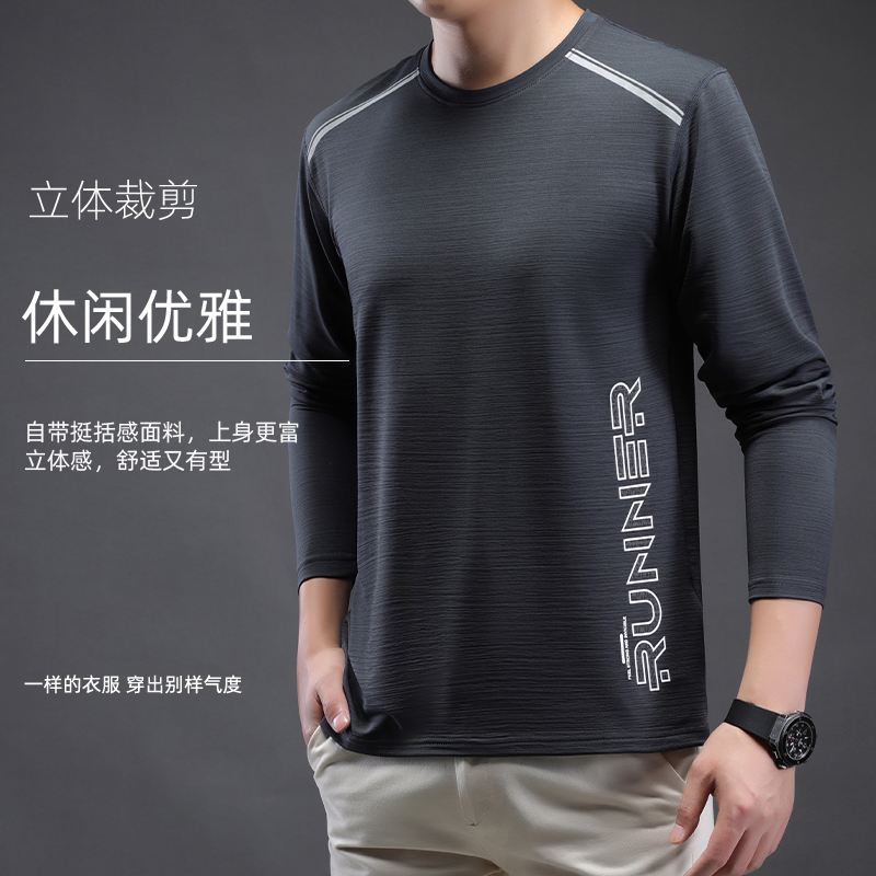 Long Sleeve Sports T-Shirt Male Autumn Winter Thick style 2023 New speed dry casual loose round collar in old age clothes-Taobao