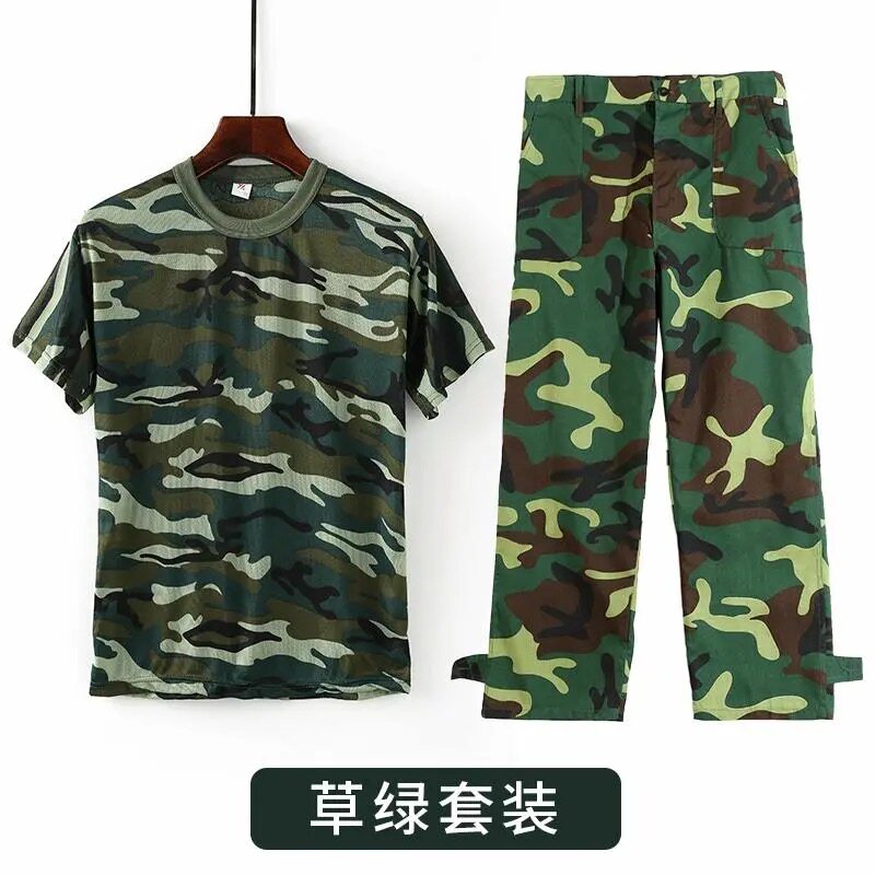 Summer military training short sleeve round collar T-shirt camouflay sweatshirt male and female students summer camp speed dry training mesh breathable