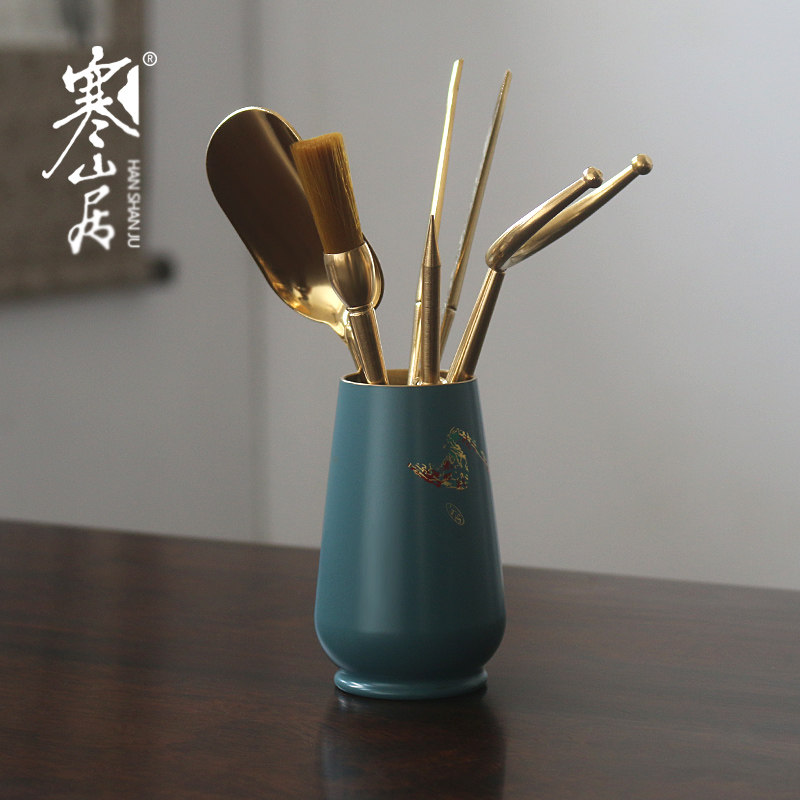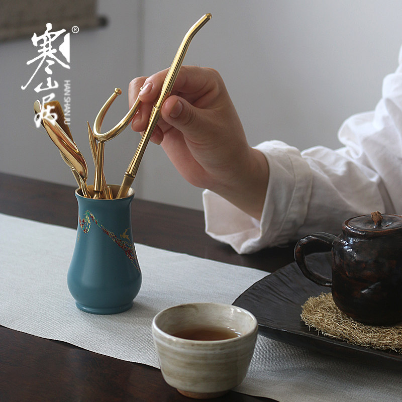Hanshanju pure copper tea ceremony six gentlemen simple light luxury tea ceremony six-piece set of metal tea needle tea clip tea shovel tea accessories