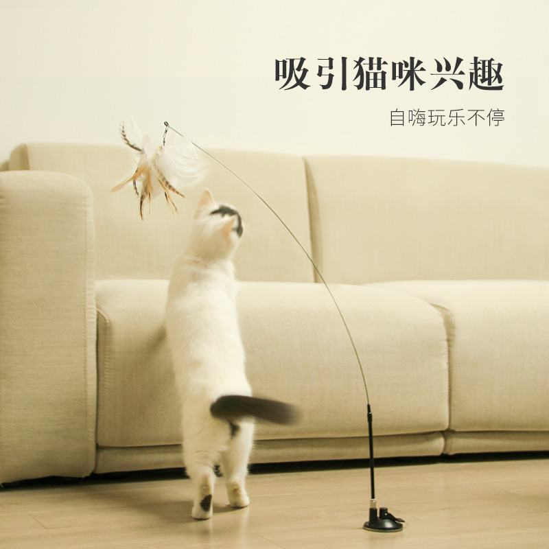 Funny Cat Stick Self-Hi Bore Relief Artifact Kitten Resistant to Biting and Scratching Steel Wire Long Rod Suction Cup Cat Toy Cat Supplies Self-Hi Rod