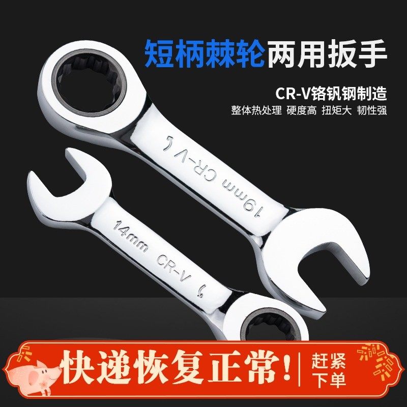 SHORT HANDLE QUICK RATCHET WRENCH MULTIFUNCTION MINI NARROW SPACE LIFT MAINTENANCE DUAL-USE PLUM OPENING SHORT BOARD HAND-TAOBAO