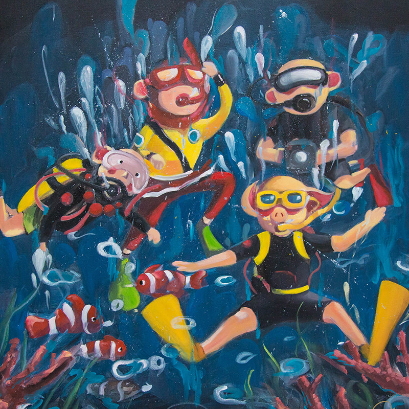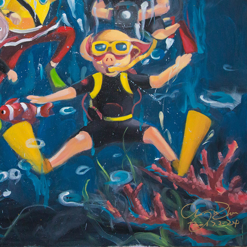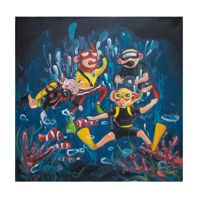 (Oil Painting Original) Search Hunter Chen Jianzhou < Undersea Treasure Hunt > 120 * 120cm West Tours Original for Auction