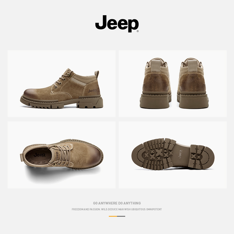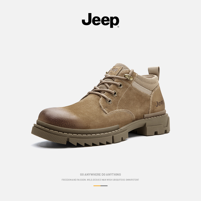 jeep autumn men's shoes mid-tube leather British style boots low-top Martin boots men's big head casual work clothes leather shoes