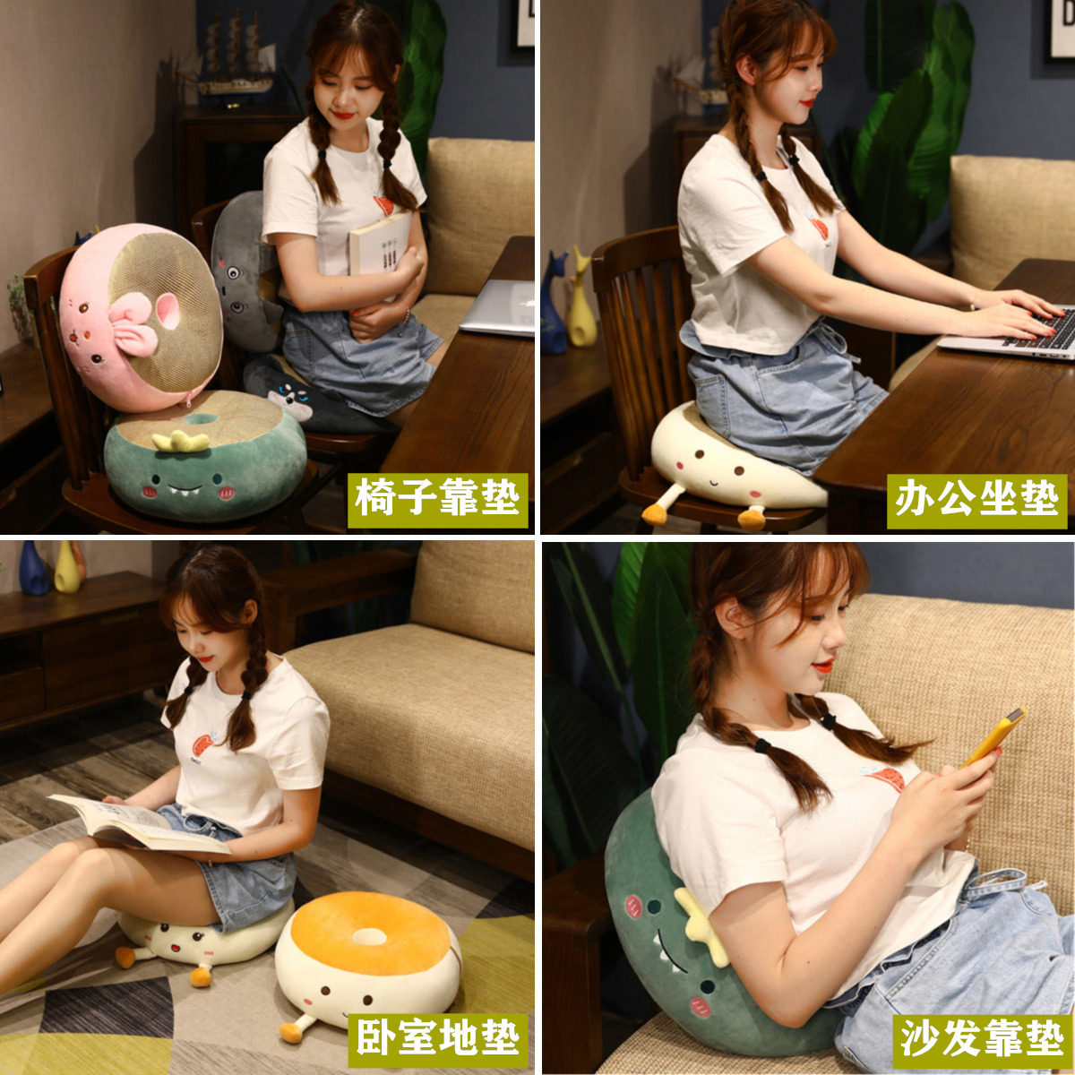 Round Cushion-Dinosaur Round Cushion-Diha Round Cushion-Pink Rabbit Round Cushion-Grey Cat Round Cushion-Egg Yolks Happy Round Cushion-Egg Yolks Smile
