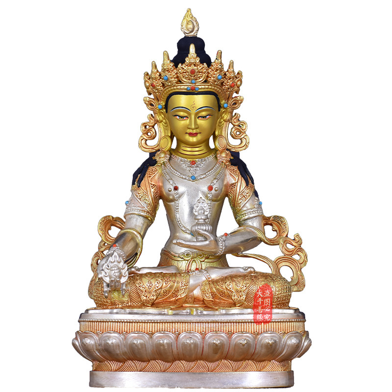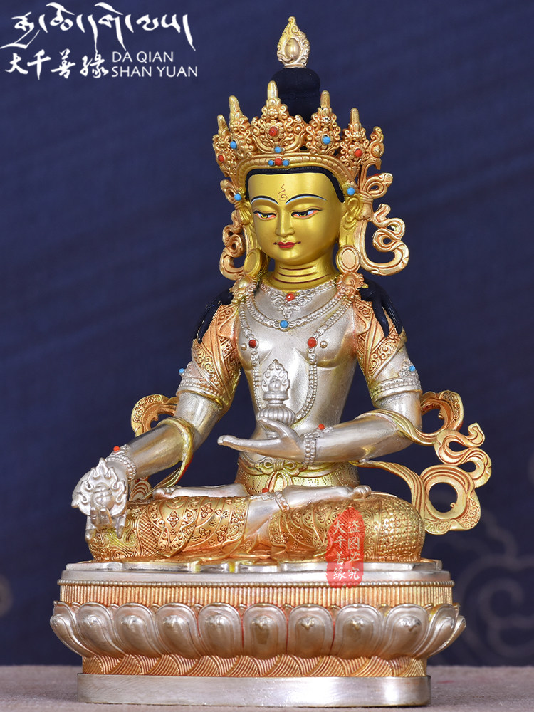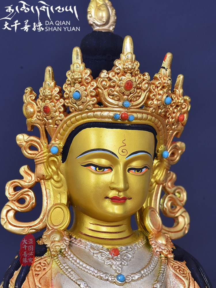 Tibetan craft bronze - gilded gold and silver 7 inches of Tibetan Bodhisattva Buddha image of Tibetan Tantra 23cm copper statue