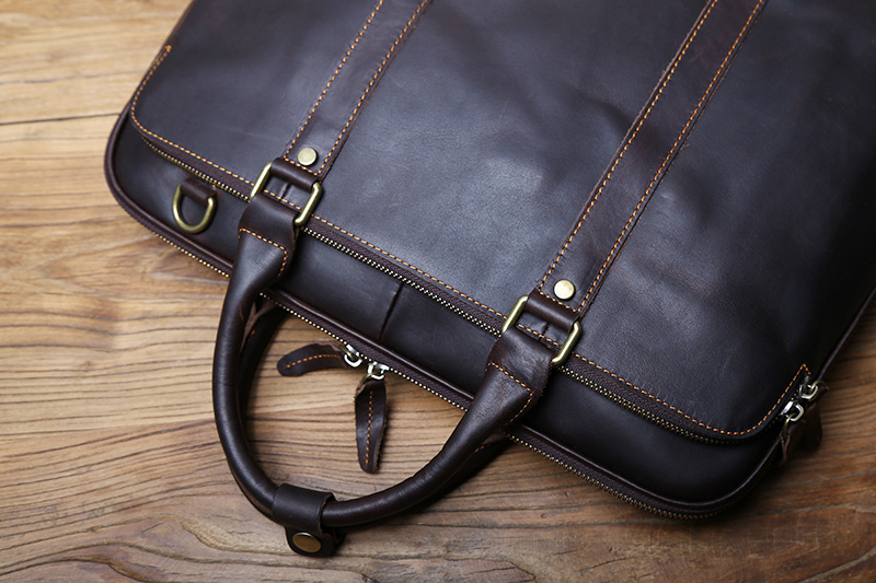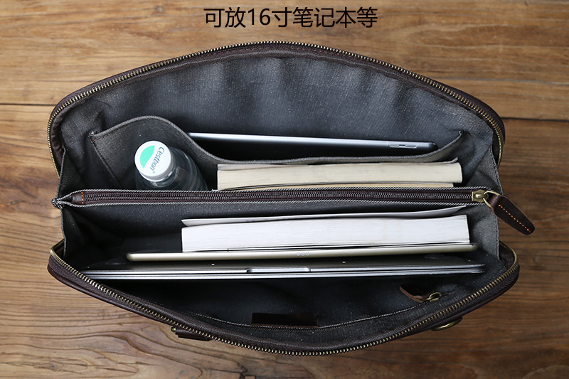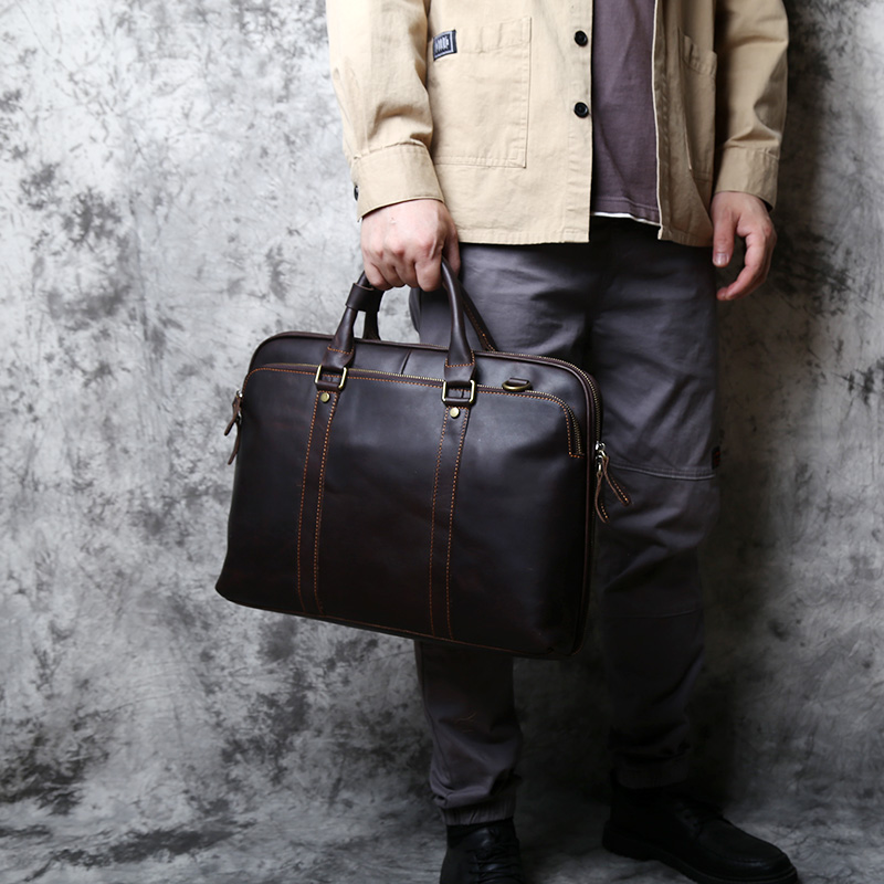 Retro first layer cowhide large-capacity handbag men's business leather briefcase handmade cross-body computer bag