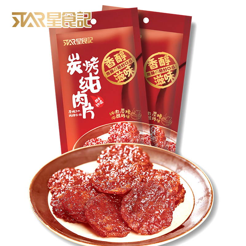 (Fat rabbit BoBo exclusive)Charcoal grilled pure meat slices 55g*3 packs of pure meat carbon grilled mellow enough leisure snacks