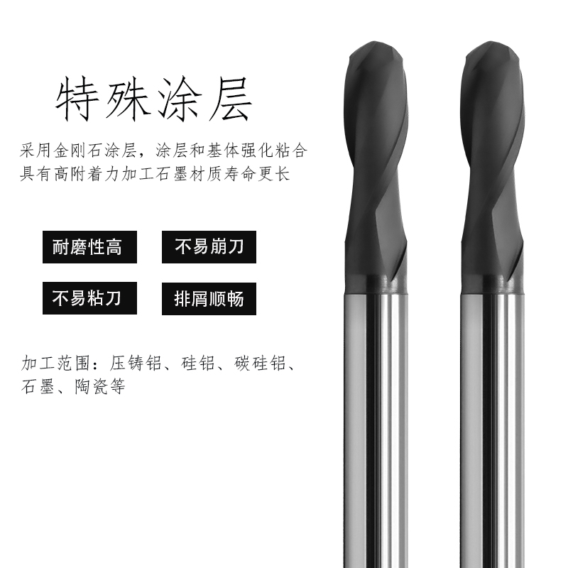 2-blade tungsten steel ball end mill CNC CNC high-carbide diamond-coated graphite machining special tool