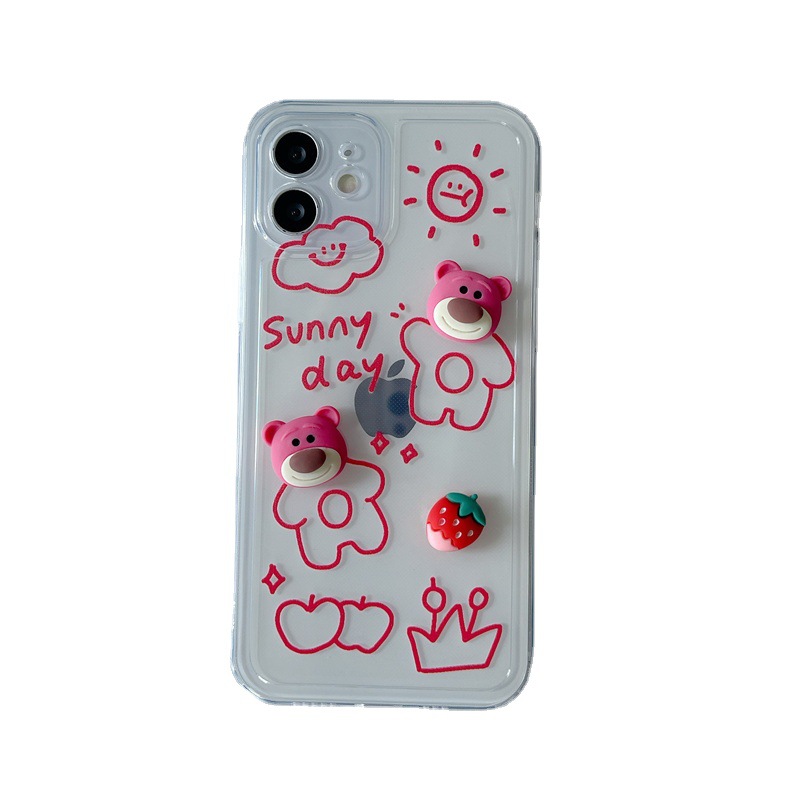 ins cartoon three-dimensional strawberry bear suitable for iPhone12Promax apple 11 mobile phone protective shell apple X silicone transparent