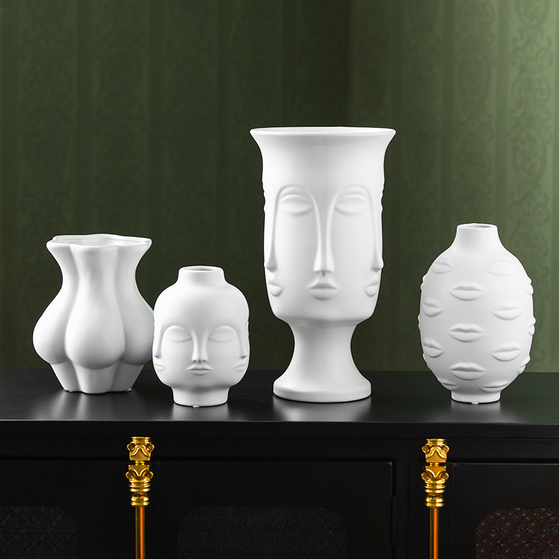 Harvest hut Nordic personality living room muse ceramic white face flower arrangement vase table decoration decoration flower device