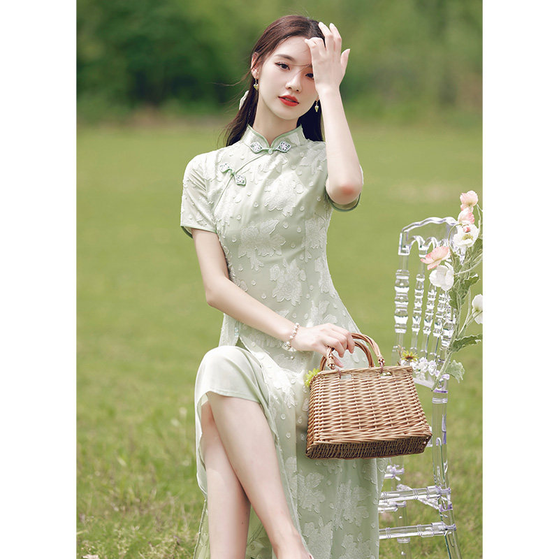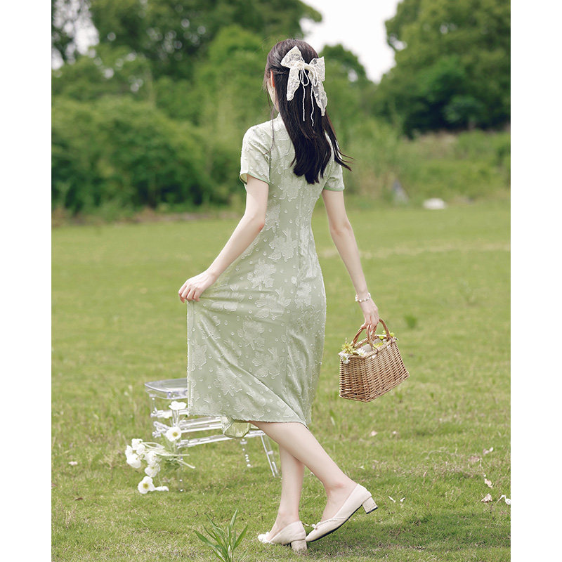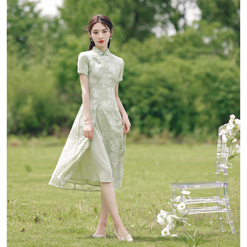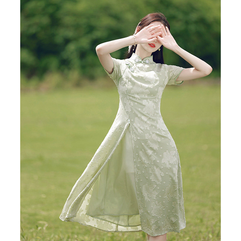 Audre Young Model 2022 New Summer Girl Green Chinese Fengpear shape improved dress