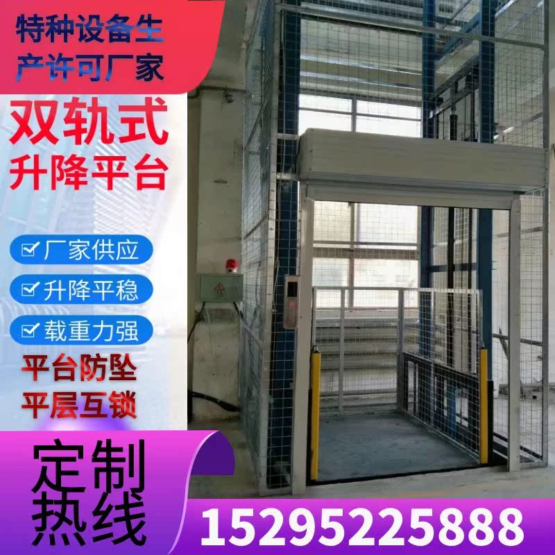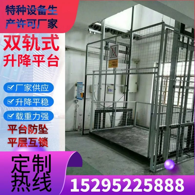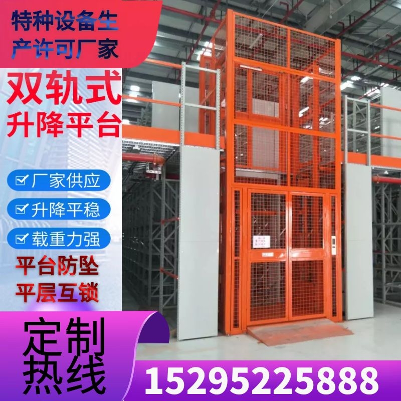 Anti-fall double-track cargo ladder fully automatic hydraulic lifting table stationary lifter plant rail lifter design