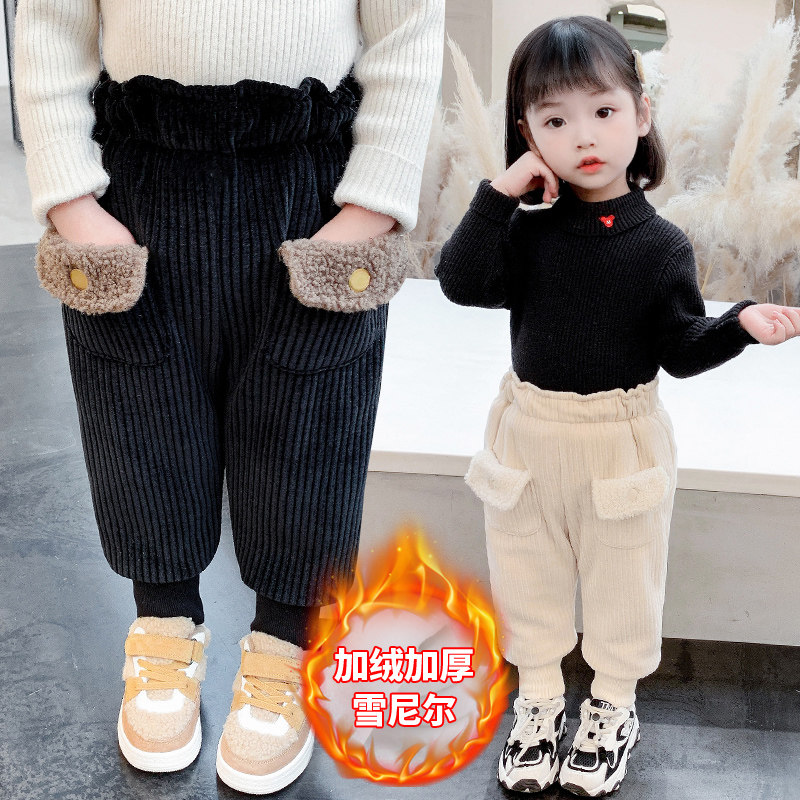 Girls pants plus thick autumn and winter dress new 2 - year - old 3 children high waist casual pants outfitted to wear pants