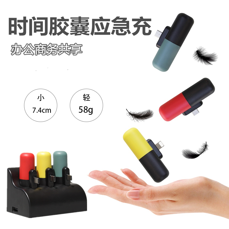 Capsule mobile charging mini wireless emergency charging ultra-thin and compact mobile power supply portable for Apple type-c Android phone oppo Xiaomi vivo fast charging small self-contained line large capacity