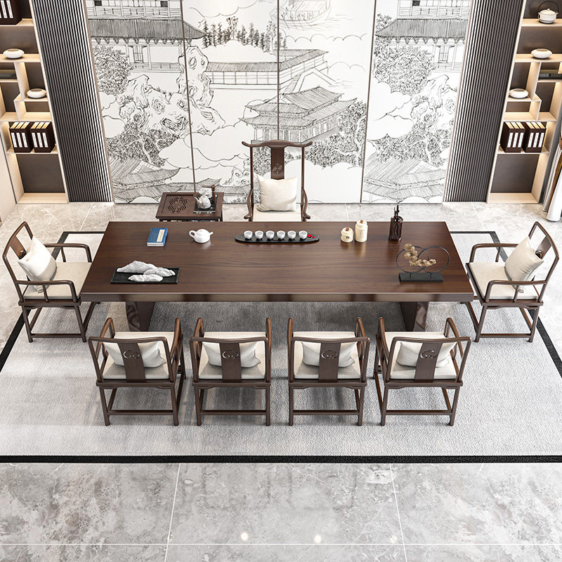 New Chinese Solid Wood Tea Table And Chairs Combine Kung Fu Big Board Office Bubble Tea Table Modern Minima Living Room Home Zen