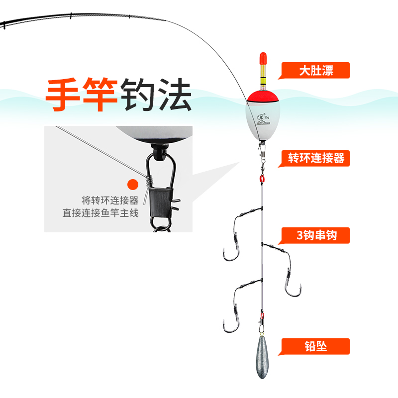 Floating fishing grass carp string hook fishing group set vigorously horse 3 string hook line group anti-winding hand rod sea rod throwing rod