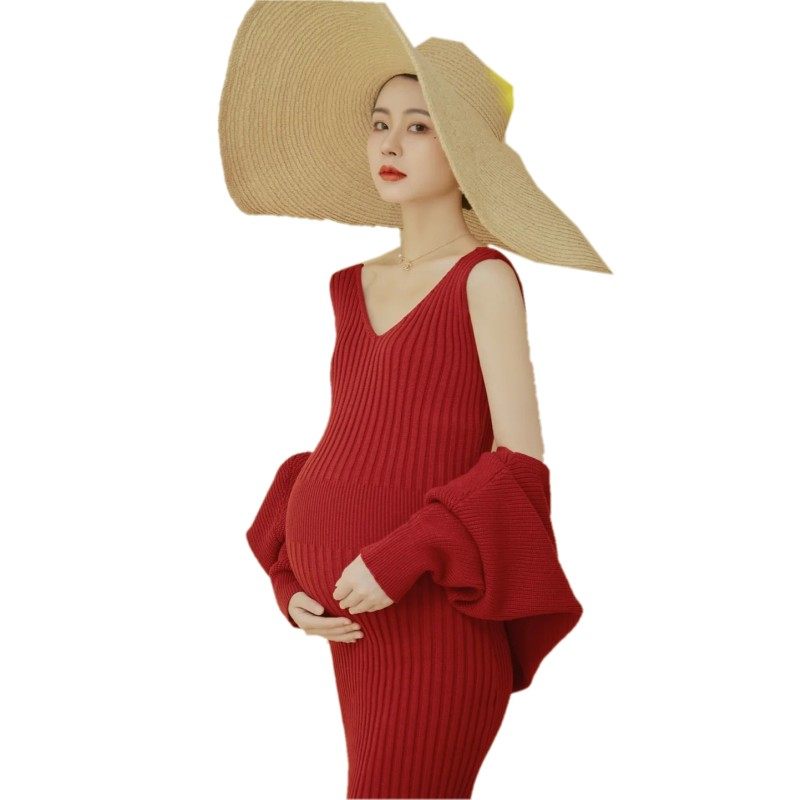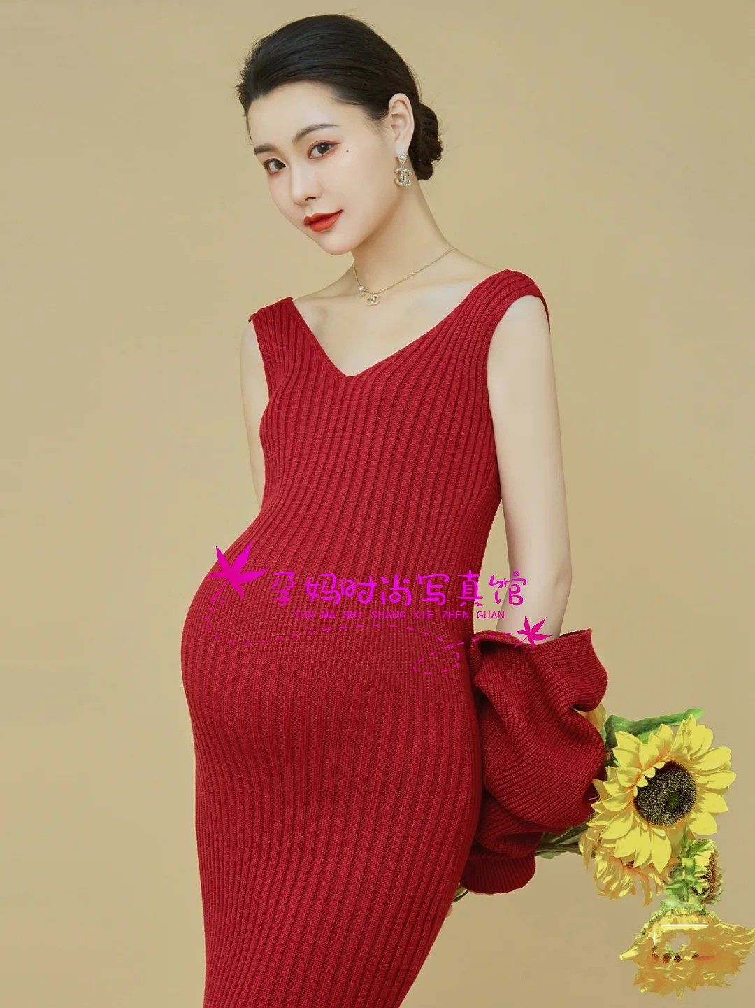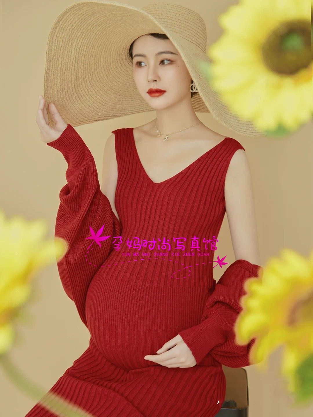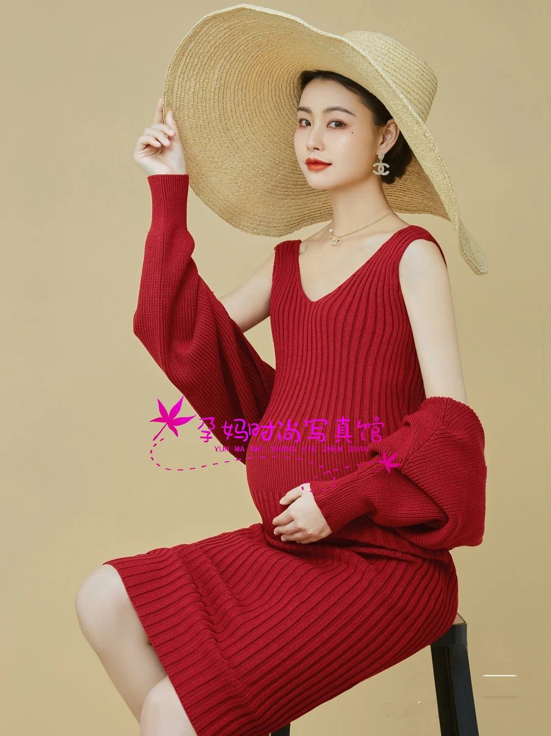 2021 shivering with the same photo gallery pregnant woman Xiaoqing's new art knit sweater big belly mommy shooting to write real clothes
