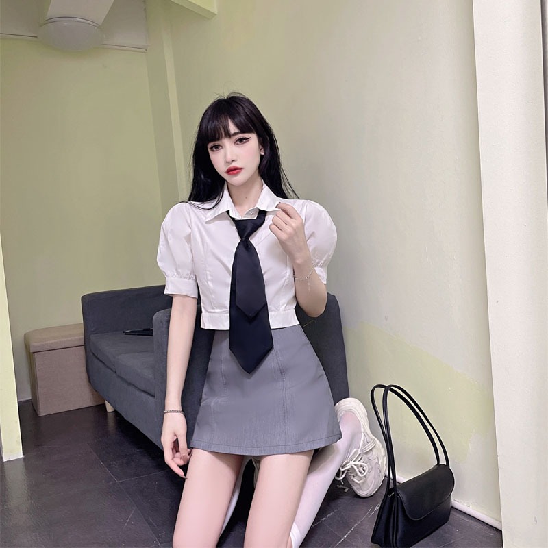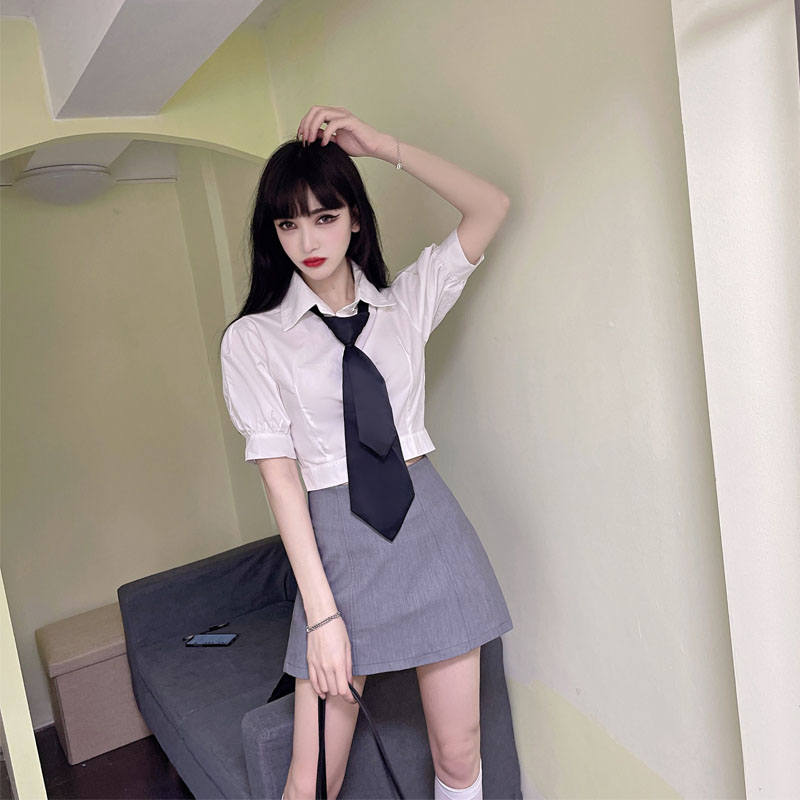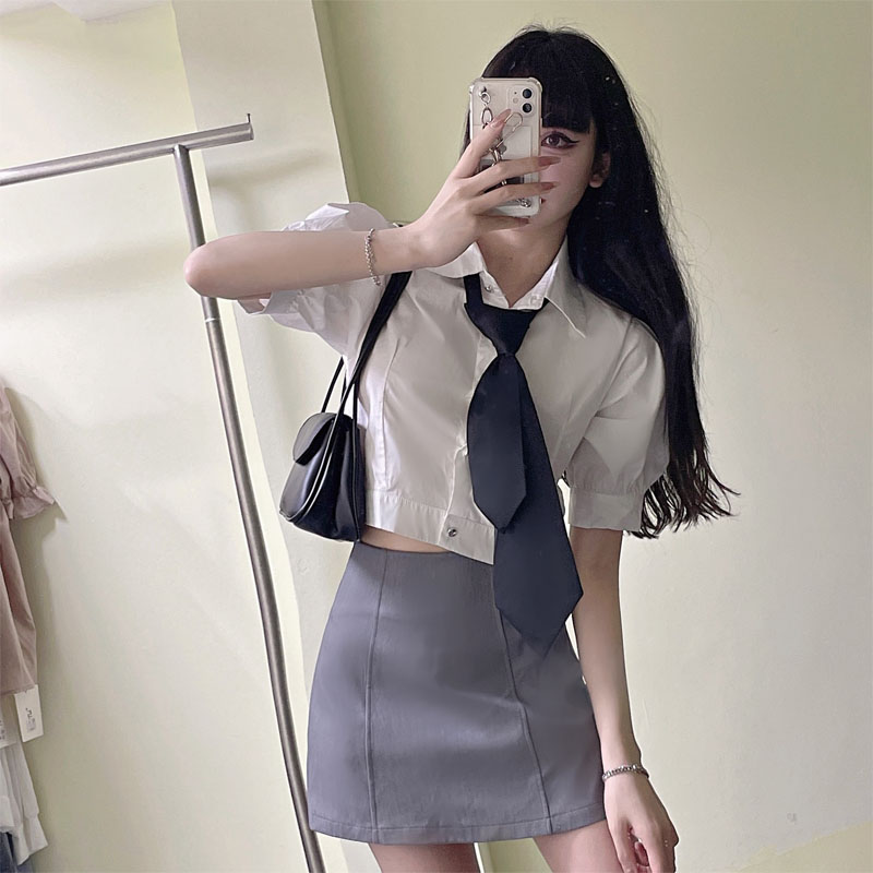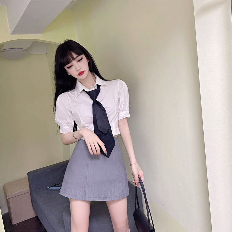 White polo collar with high waist and short shirt woman design sensation small frock sleeve white shirt short sleeve blouse summer