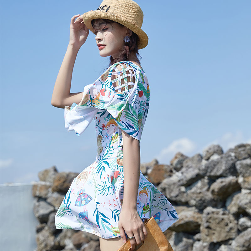 Swimsuit female summer fairy fan 2021 new fashion small chest split students thin belly Conservative ladies swimwear