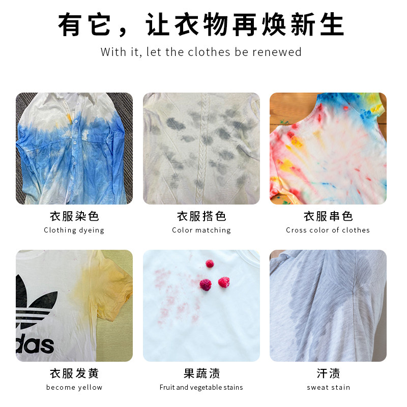Removal of strings of chromed dyeing white clothing bleach to stains to yellow whitening powder reduction washed white clothes special deity
