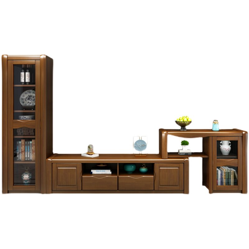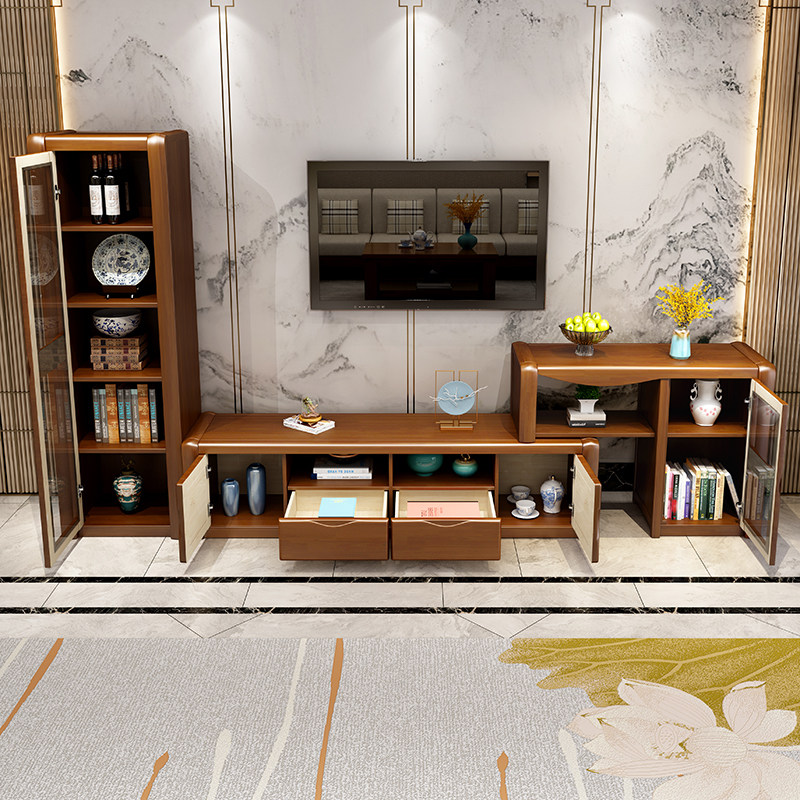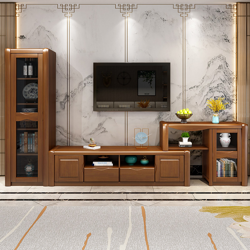 Solid wood coffee table TV cabinet combination modern Chinese simple retractable floor cabinet living room home small apartment high and low cabinet