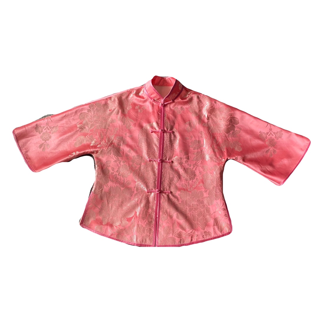 Cloud decoration totem 2021 original ethnic style women's clothing old satin silk satin casual stand-up collar horse clip folio small jacket