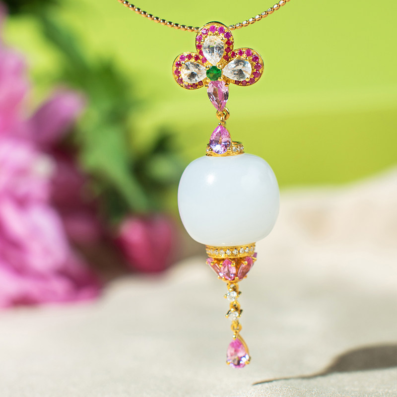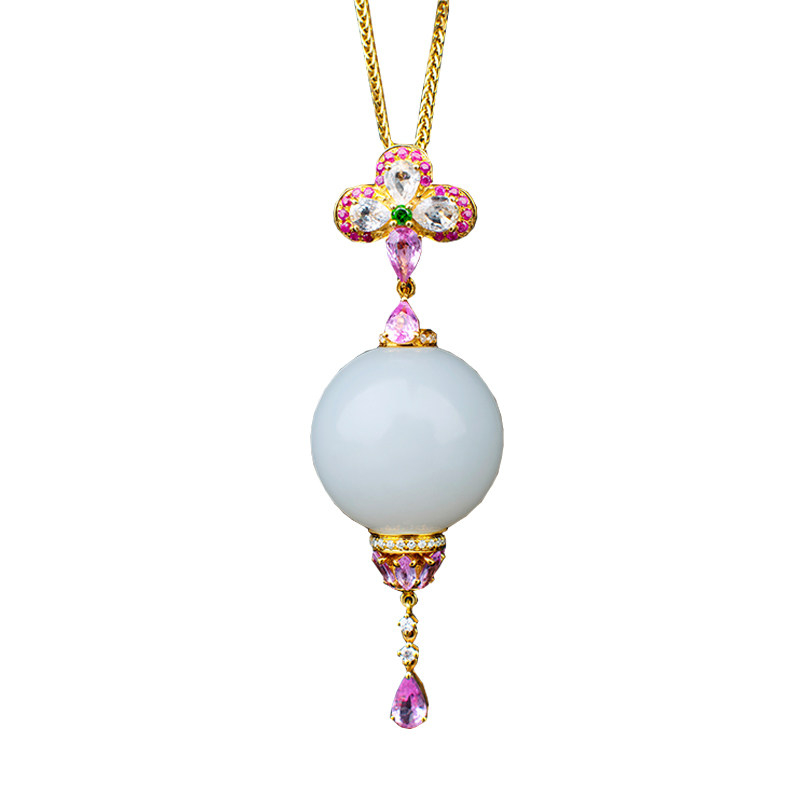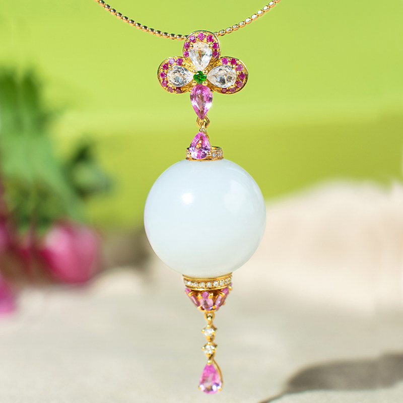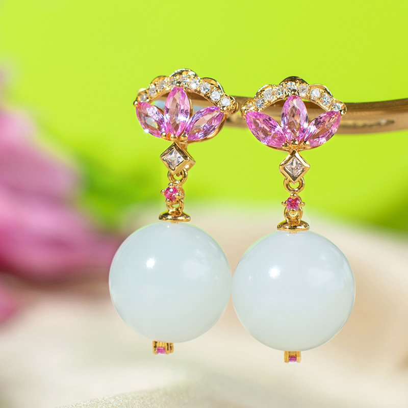 Orchid Jin Jewellery and Tian jade pendant female round pearl earbuds with old pearl ears Xinjiang sheep fat white jade seed hanging pendant-Taobao