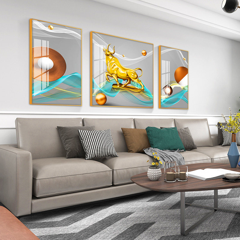 Light luxury living room decorative painting abstract animal triple combination mural sofa background wall crystal porcelain hanging painting