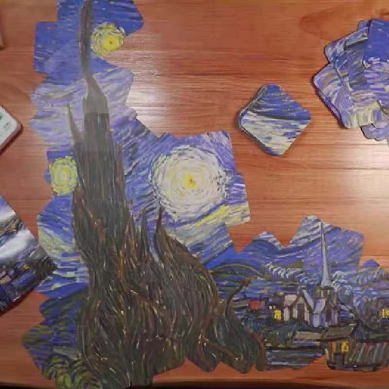 Douyin with double-sided Van Gogh Starry Sky Moon night overlap Puzzle Puzzle wooden super difficult special shape irregular