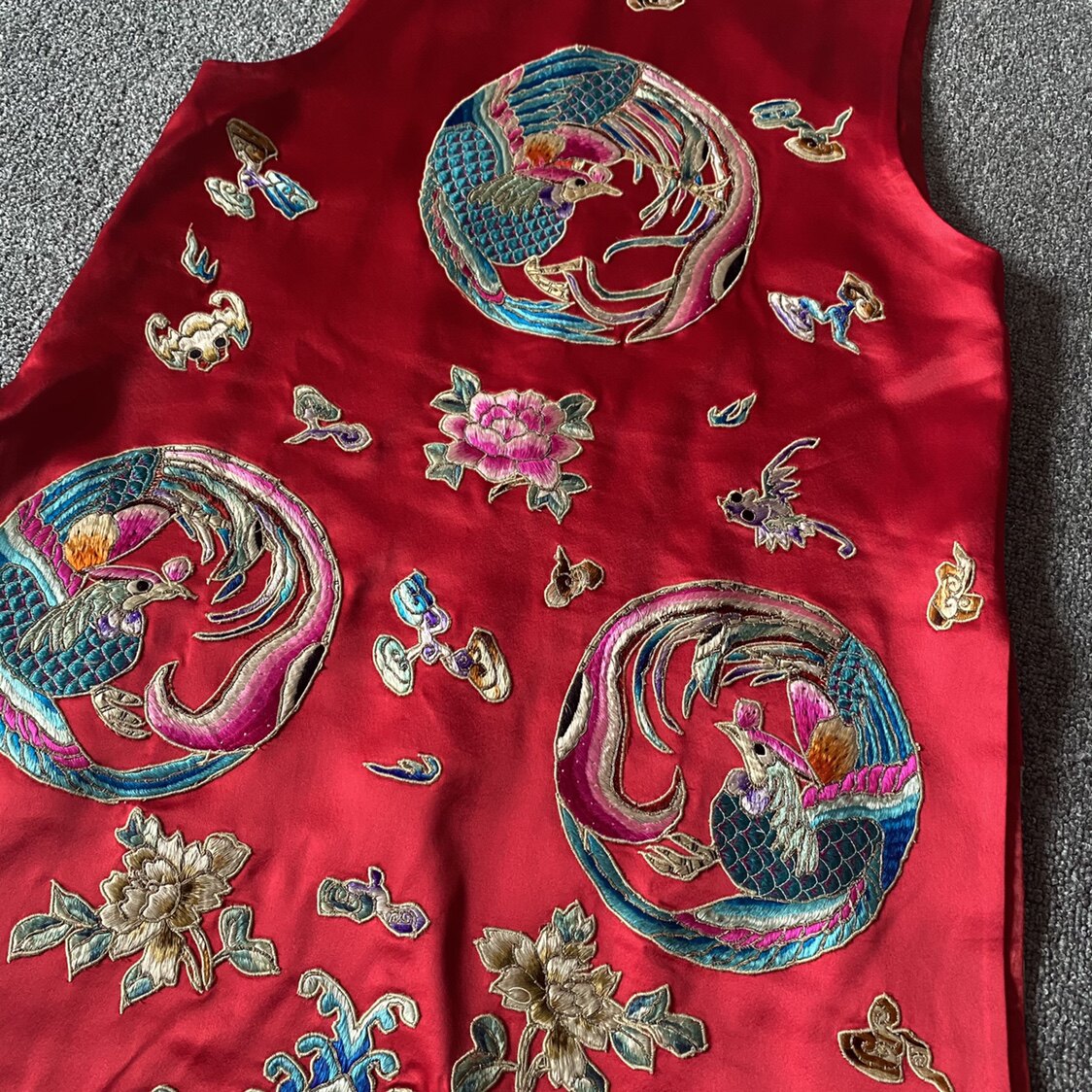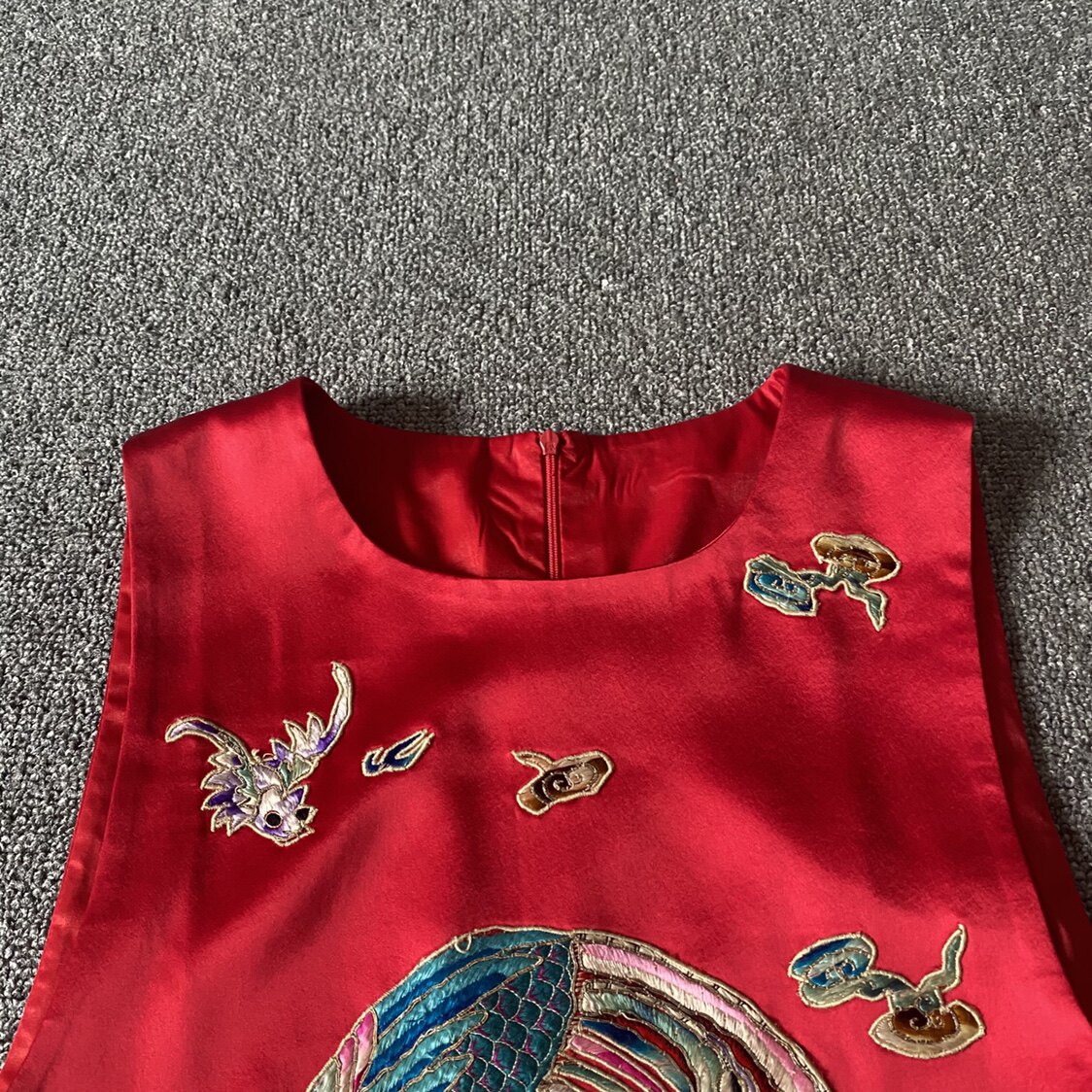 Cloud decoration totem 2021 original ethnic style women's hand embroidery old embroidery three groups phoenix leisure sleeveless horse clip