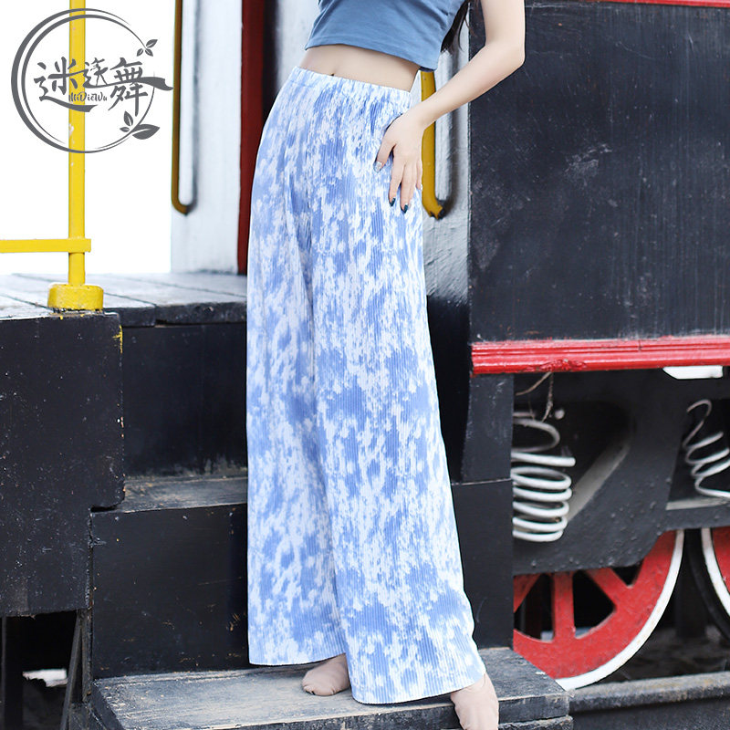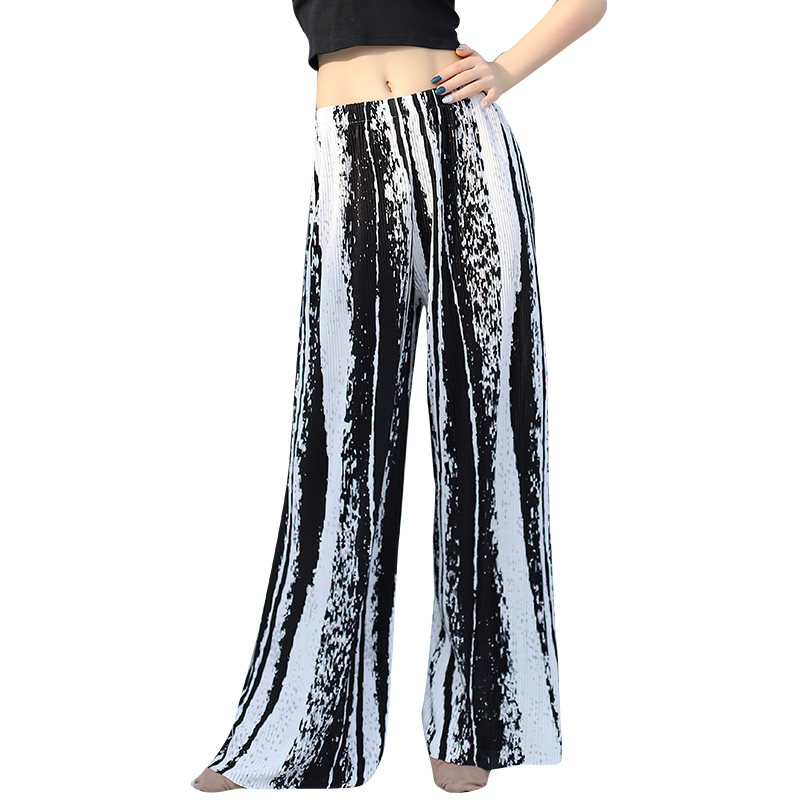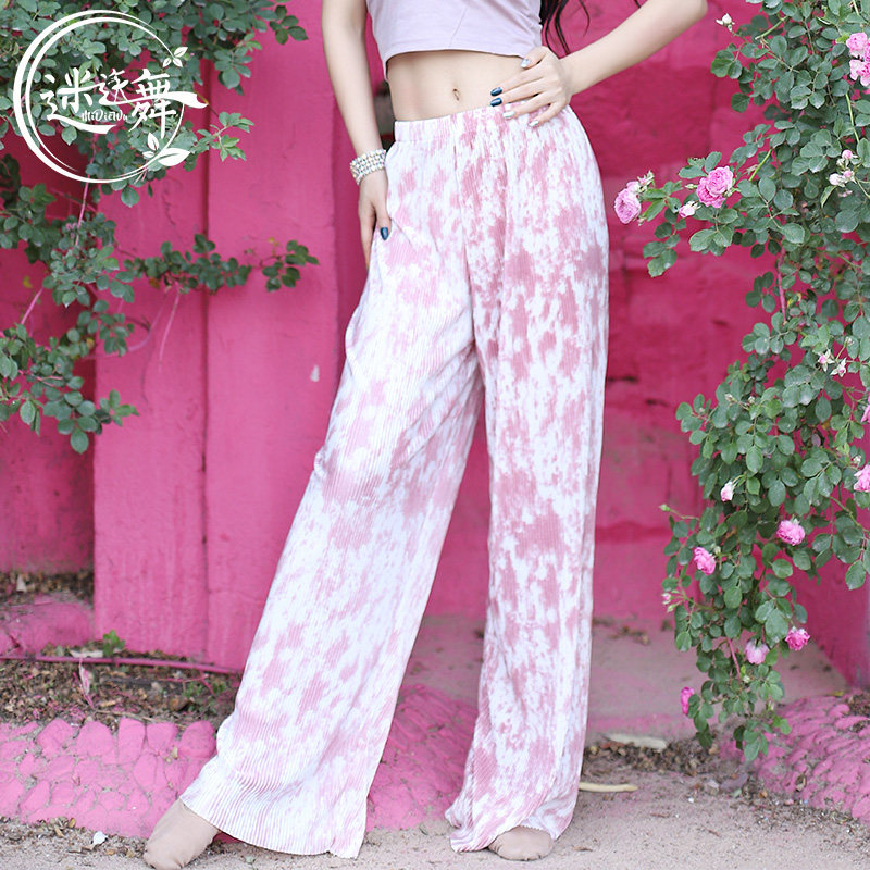 Fan dance belly dance pants new summer ink printing wide leg pants dance practice pants women's loose oriental dance suit