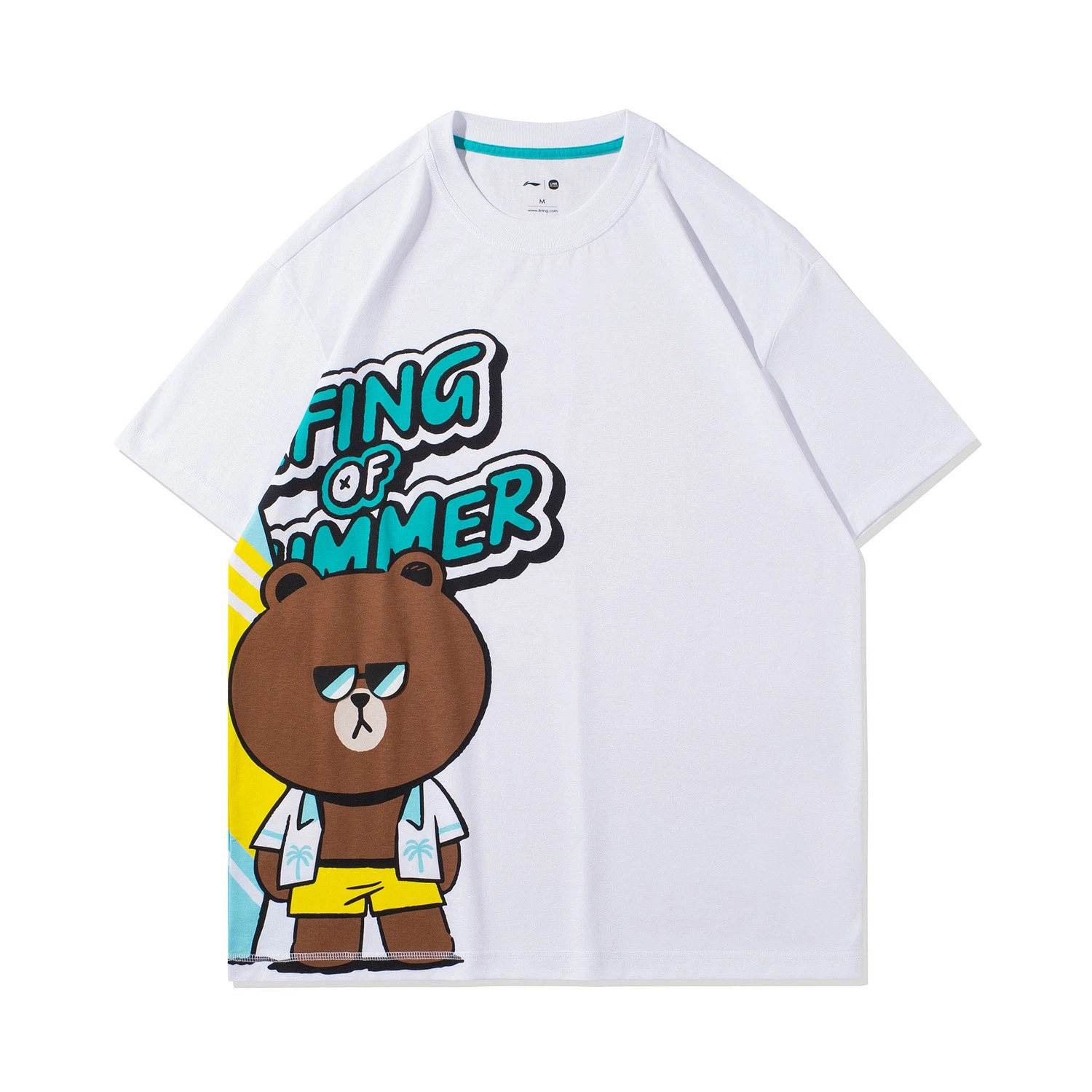Li Ning Short Sleeve Summer New Cute Brown Bear Joint Printed Male And Female Lovers Loose T-shirt AHSR818