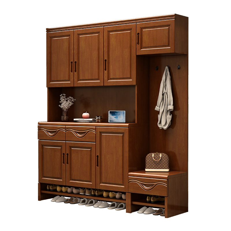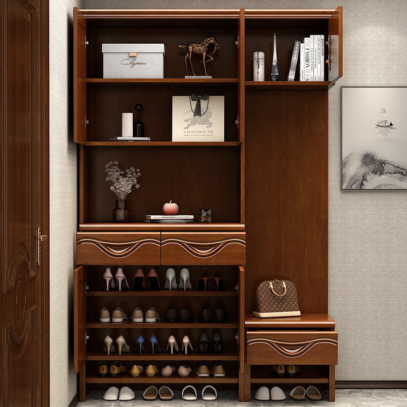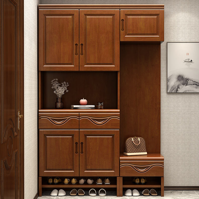 All solid wood shoe cabinet home entrance porch cabinet new Chinese style small apartment entrance hall cabinet integrated living room partition cabinet