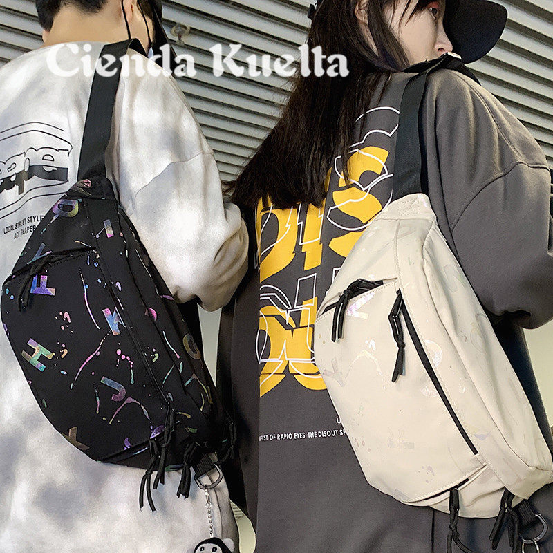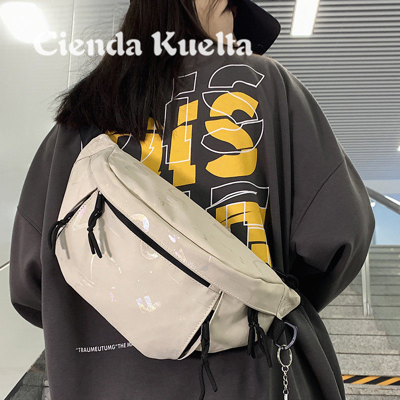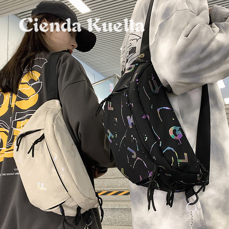 Cienda Kuelta bag girl 2021 new tide-hocked fad sabbage canvas casual chest bag summer