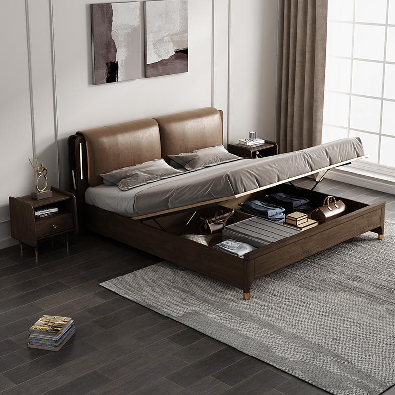 Retro solid wood bed modern simplicity Nordic 1 8 m storage double bed Middle ancient boxwood high Box storage bed frame