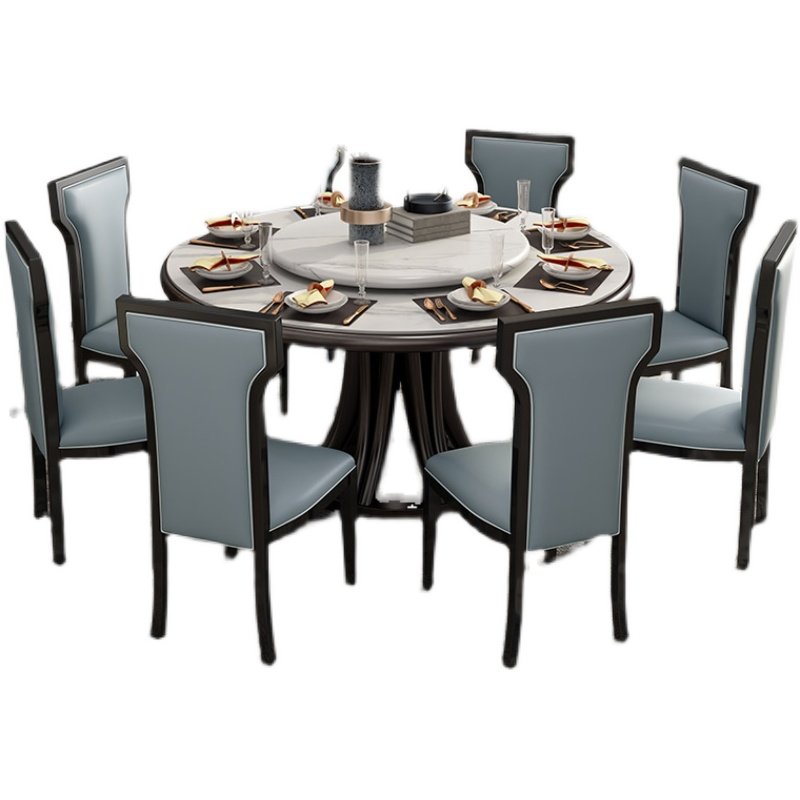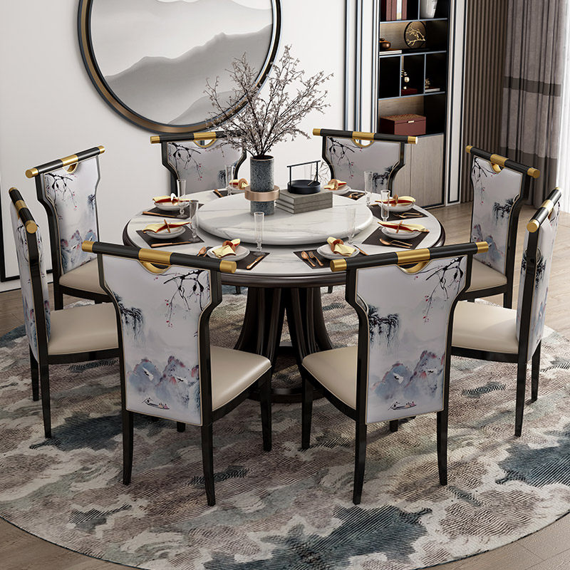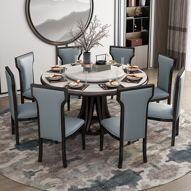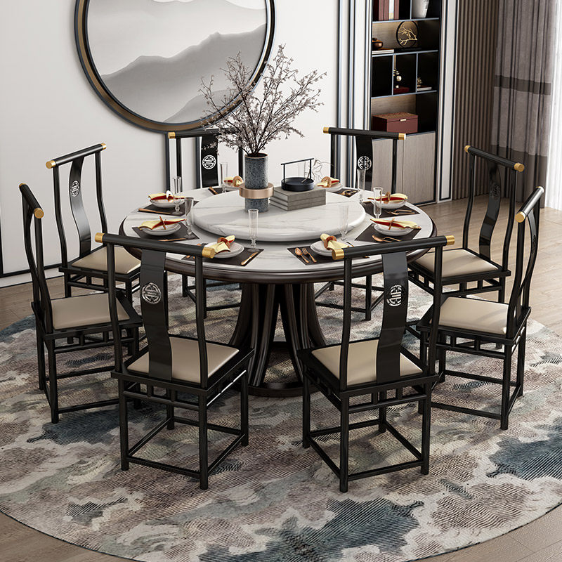 New Chinese solid wood dining table and chair combination Household imported full rock plate dining table with turntable Small apartment 8 10 people round table