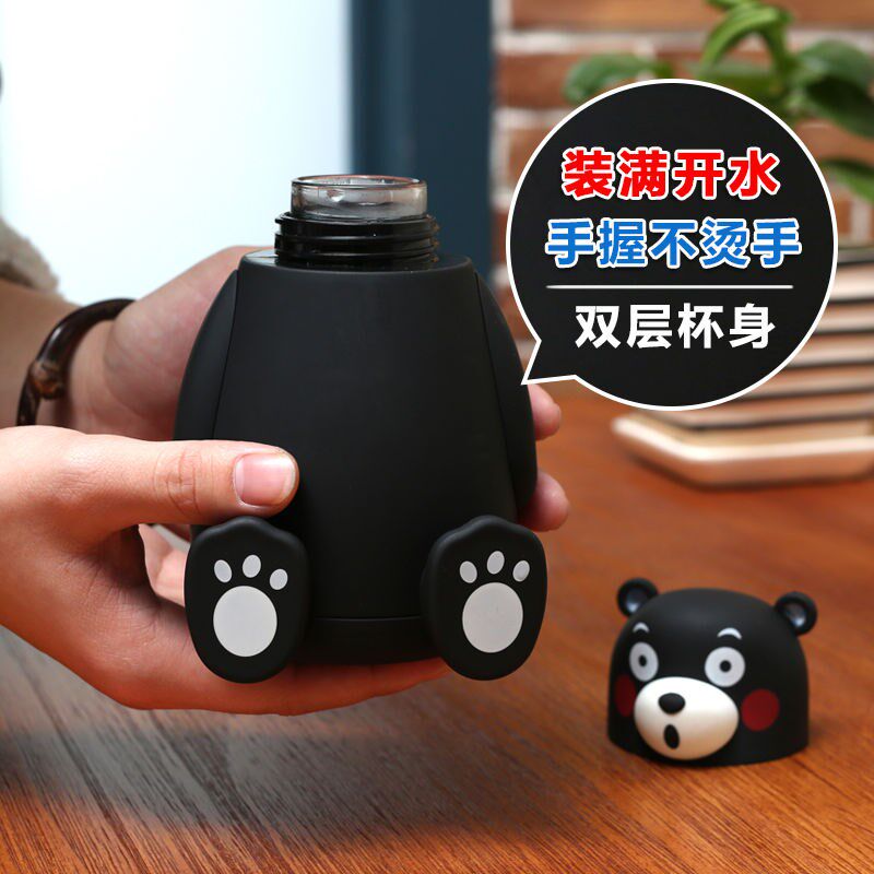 Creative personality Kumamoto bear cute cute cartoon glass cup male and female students Korean version portable trendy fashion water cup