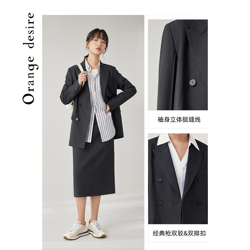 Orange Despire Fried Street Little Western Suit Woman Black 2022 Spring Dress Professional Suit Superior Sense Suit Jacket