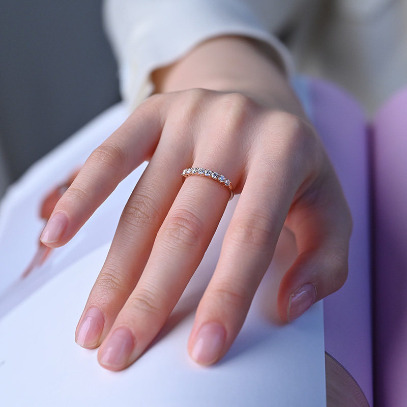 Advanced custom 18k gold inlaid high-grade diamond row ring round female ring for marriage proposal